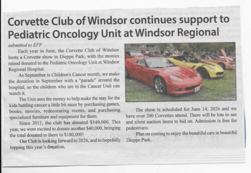 The Corvette Club of Windsor was proud to donate $[...]